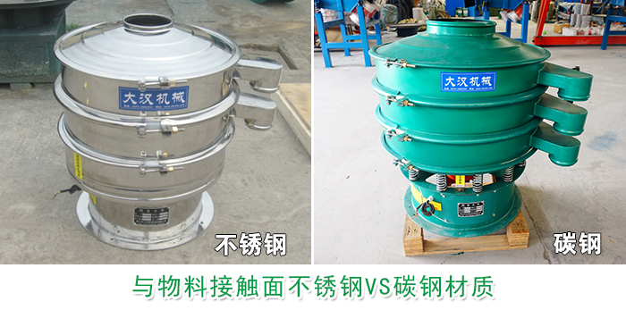 不銹鋼材質具有良好的耐腐蝕性能和防不銹性,外表相對美觀且不必經(jīng)過鍍色等表面處理,適合大部分篩分物料接觸面要求較高的物料。