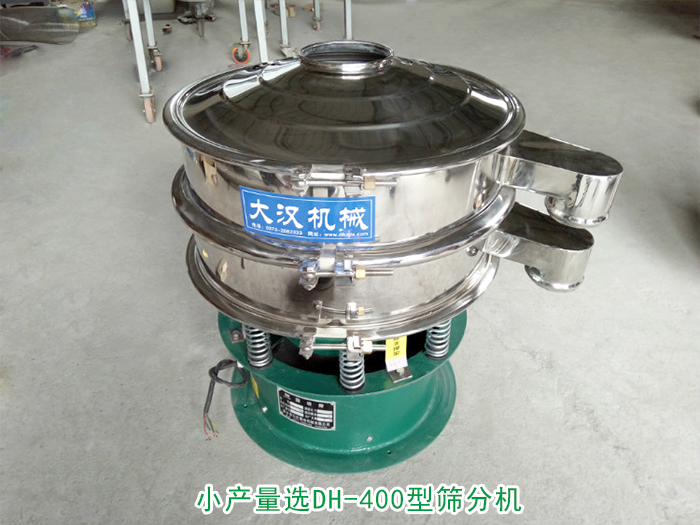 小產(chǎn)量選DH-400型篩分機:篩分直徑為350m/m,功率為0.18kw,每小時處理量為80kg-150kg。