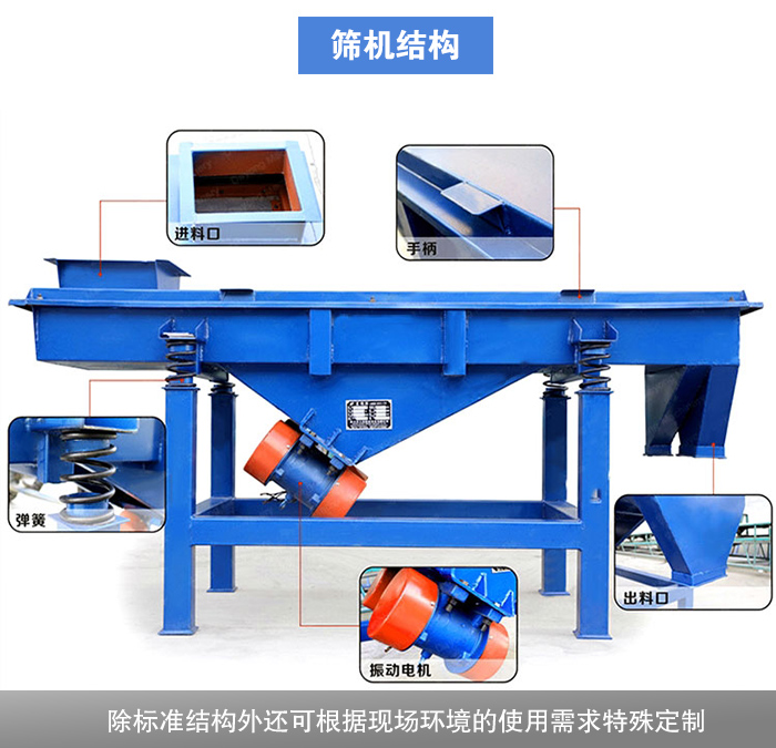 松香分級(jí)直線振動(dòng)篩除標(biāo)準(zhǔn)結(jié)構(gòu)外還可根據(jù)現(xiàn)場(chǎng)環(huán)境的使用需求特殊定制(如底座加高、進(jìn)料口加緣、出料口加閥門等等),隨之價(jià)格也會(huì)有對(duì)應(yīng)的提升,每個(gè)型號(hào)之間相差600-1500元不等。