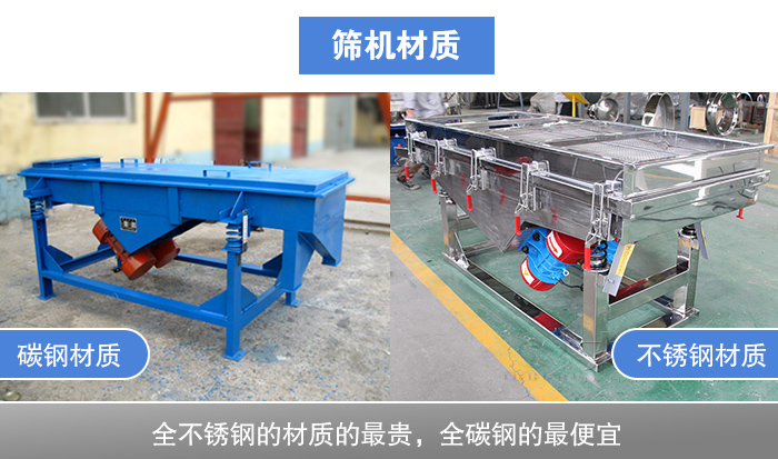 松香分級(jí)直線振動(dòng)篩材質(zhì)分為碳鋼與不銹鋼兩種,材質(zhì)的結(jié)構(gòu)形式有3種,1:全不銹鋼;2:全碳鋼;3:不銹鋼+碳鋼(物料接觸為不銹鋼材質(zhì),底座為碳鋼材質(zhì))其中全不銹鋼的材質(zhì)的貴,全碳鋼的便宜,價(jià)格上會(huì)相差幾百到上千元不等。對(duì)于松香篩分衛(wèi)生環(huán)境要求較高的可以使用的不銹鋼材質(zhì),對(duì)于衛(wèi)生環(huán)境要求不高的可以選擇碳鋼材質(zhì)。