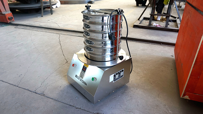 電機(jī)帶動(dòng)上部振動(dòng)托盤振動(dòng),由振動(dòng)托盤傳導(dǎo)至安放在振動(dòng)盤上部篩框上,然后由需要檢測目數(shù)的篩框把小于篩面網(wǎng)孔的物料顆粒篩分至下層篩框,一般情況下,試驗(yàn)篩一次可安裝1-7層標(biāo)準(zhǔn)篩框,同時(shí)篩分出2-7個(gè)不同規(guī)格的待檢樣品。