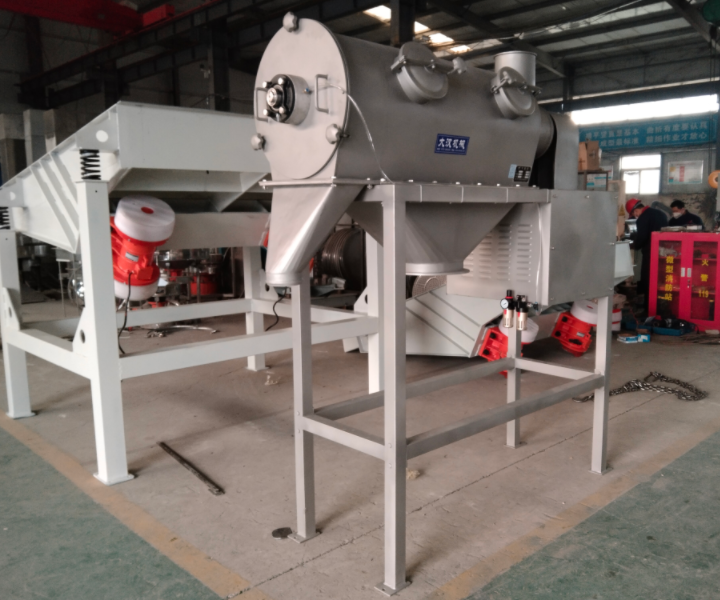 靈芝粉在整個(gè)生產(chǎn)過(guò)程中離不開(kāi)氣旋篩分機(jī),靈芝粉置于 WQS30-100氣旋篩機(jī)體內(nèi),物料通過(guò)螺旋輸送系統(tǒng)后,和氣流混合、霧化進(jìn)入網(wǎng)筒內(nèi);通過(guò)網(wǎng)筒內(nèi)風(fēng)輪葉片使物料同時(shí)受離心力和旋風(fēng)推進(jìn)力,從而近使物料噴射過(guò)網(wǎng),由細(xì)料排出口排出,不能過(guò)網(wǎng)的物料沿網(wǎng)筒壁從粗料排出口排出。